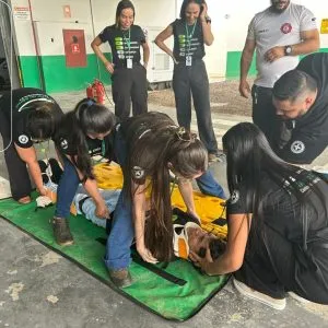 A capacitação uniu teoria e prática, abordando prevenção de incêndios, identificação de riscos, uso correto de equipamentos como extintores e mangueiras, procedimentos de abandono de área, noções de primeiros socorros e organização da evacuação em situações críticas.