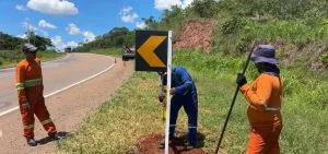 A revitalização da sinalização horizontal e vertical integra as frentes de serviço, com pintura de faixas, eixos e bordos, além da manutenção e substituição de placas. As ações reforçam a orientação aos condutores e aumentam a segurança viária ao longo do trecho.